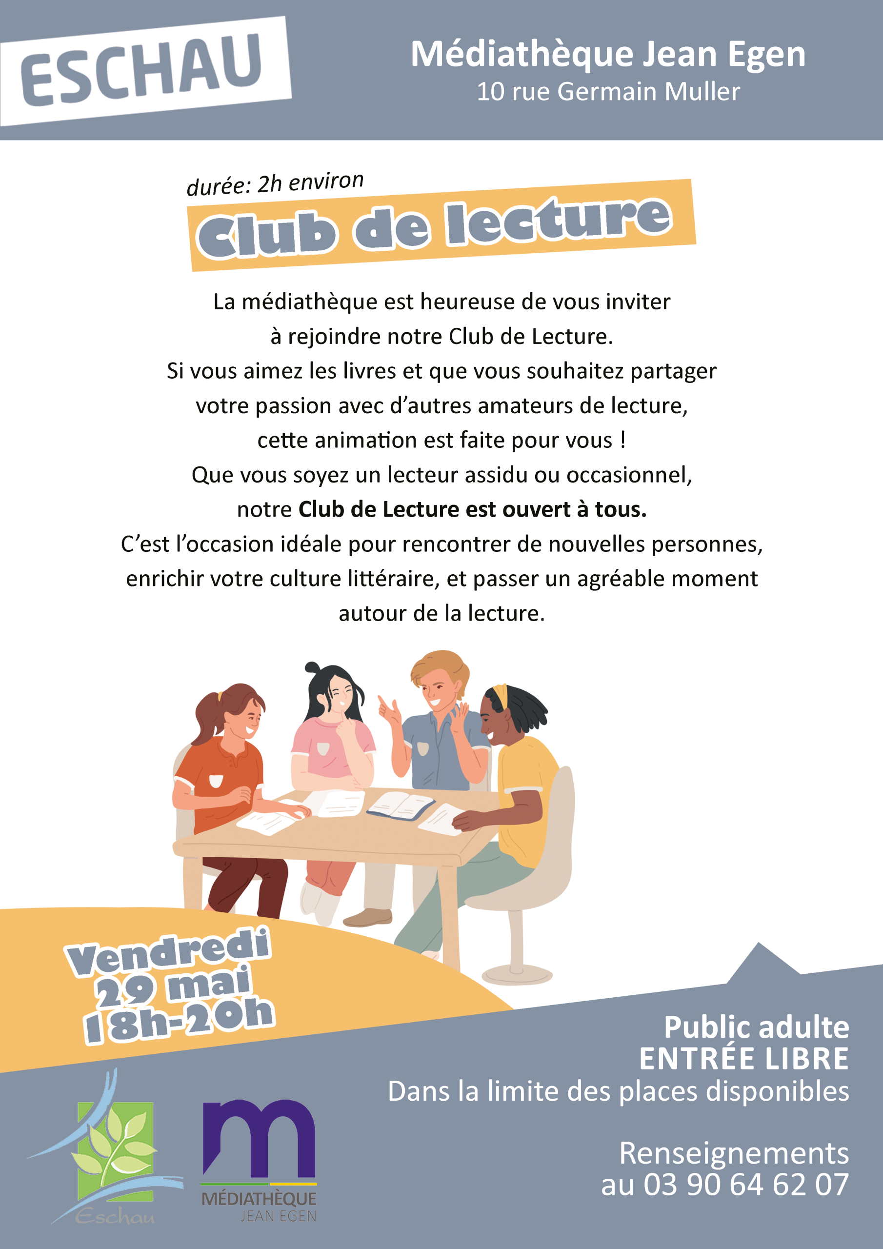 La Médiathèque est heureuse de vous inviter à rejoindre son Club de lecture.